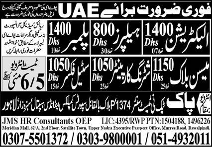 JMS HR Consultant OEP is looking for candidates for following posts as per job advertisement published in daily Express Newspaper of May 5, 2023 for location Sharjah, abu dhabi UAE: