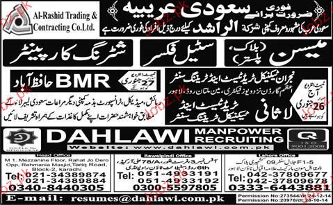 Mason Block, Mason Plaster, Steel Fixers Job Opportunity