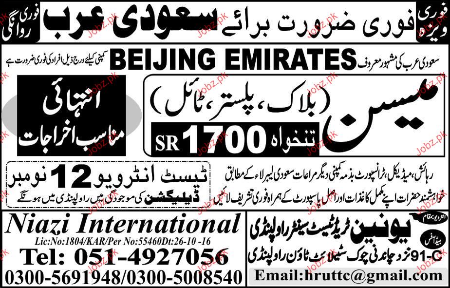 Apply as per details in job advertisement. Login to view further details of how to apply via https://www.jobz.pk online.