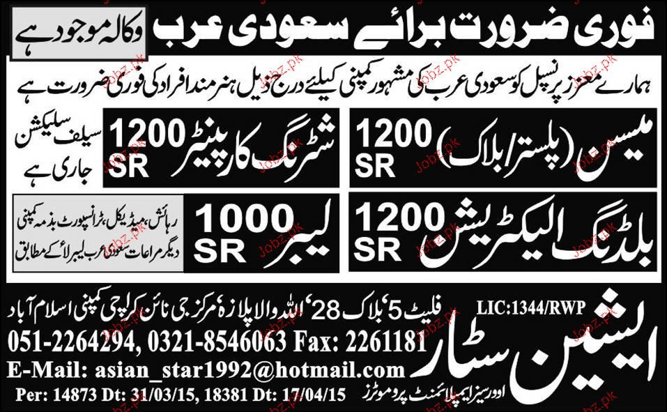 Mason Block, Mason Plasters, Shuttering Carpenters Wanted