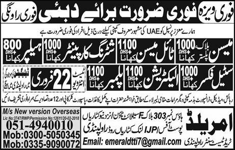 Latest Emerald Technical Training Institute Construction Posts Dubai 2025