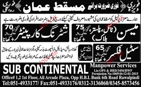Mason Block, Mason Plasters, Steel Fixers Job Opportunity