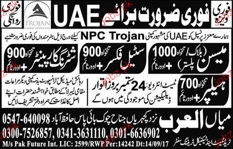 Mason Block, Mason Plasters, Steel Fixers Job Opportunity