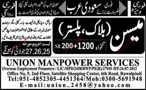 Mason Block / Plaster Job Opportunity