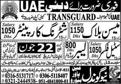 Vacant posts including shuttering carpenter, labor, mason block and steel fixer are announced in New Gondal Manpower Bureau Abu Dhabi, dubai UAE as per 20 June 2023 advertisement in daily Express Newspaper. Preferred Education is Matric etc.
