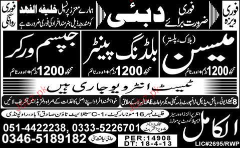 Mason, Building Painters And Gypsum Workers Wanted