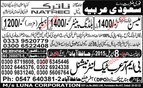 Mason, Building Painters and Helpers Job Opportunity