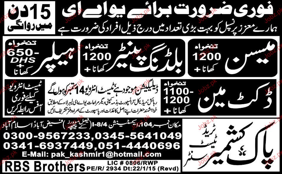 Mason, Building Painters, Helpers And Ductman Wanted