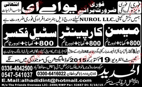 Mason, Carpenters And Steel Fixers Job Opportunity