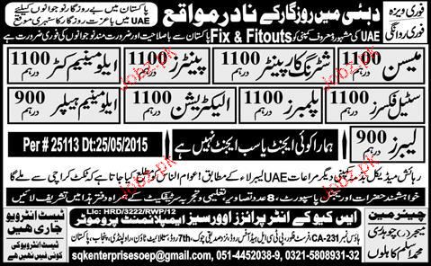 Mason, Electricians, Aluminum Cutters Job Opportunity