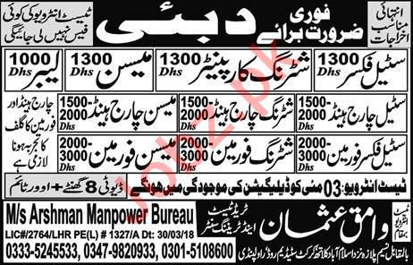 Mason Foreman & Shuttering Foreman Jobs 2018 In Dubai