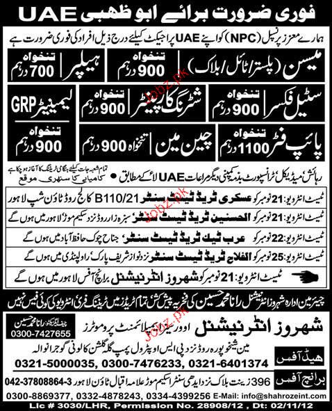 Mason, Helpers, Steel Fixers, Shuttering Carpenters Wanted