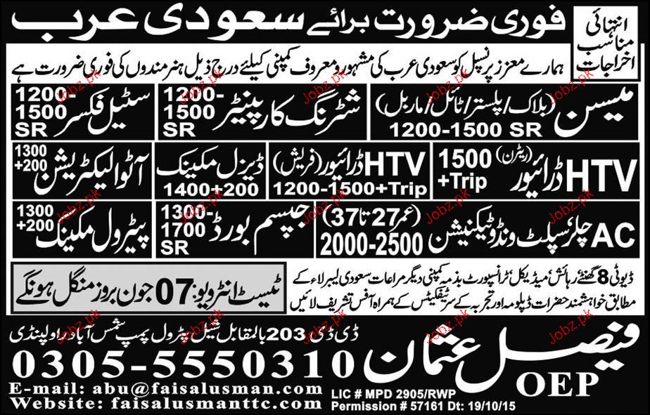 Mason, HTV Drivers, Shuttering Carpenters Wanted