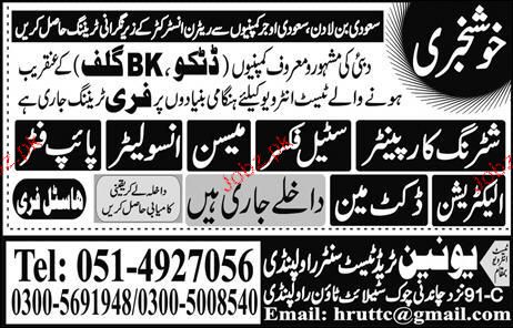 Mason, Insolators, Shuttering Carpenters Job Opportunity