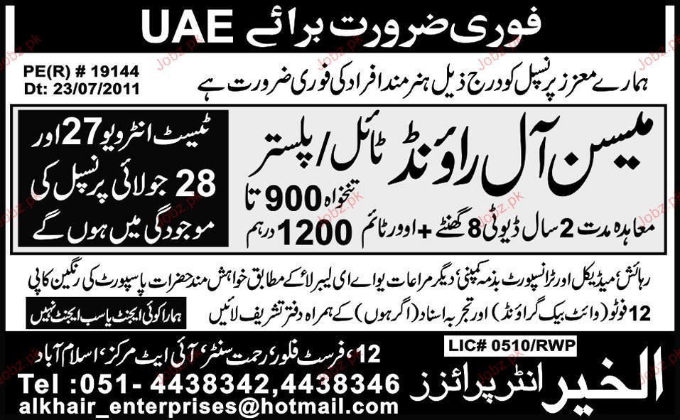 Apply as per details in job advertisement. Login to view further details of how to apply via https://www.jobz.pk online.