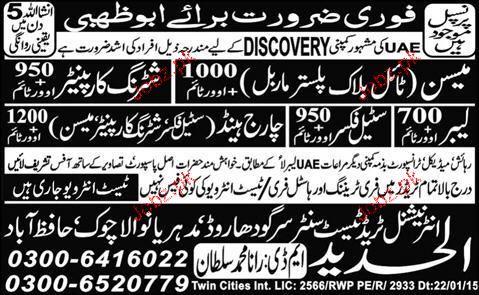 Mason, Mason Tiles, Shuttering Carpenters Job Opportunity