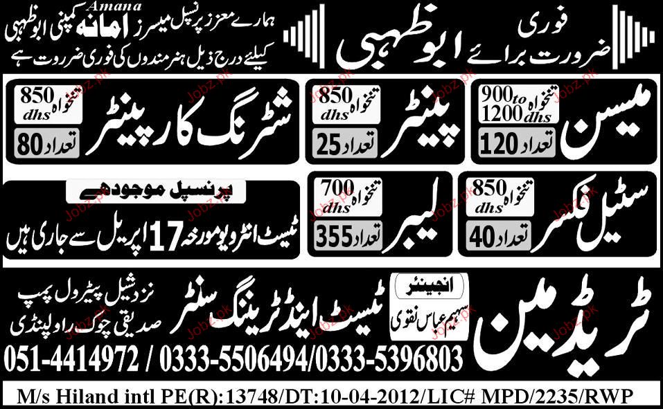 Mason, Painter, Shuttering Carpenter Job Opportunity