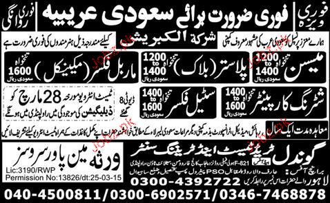 Mason, Plaster Block, Marble Mechanical Job Opportunity