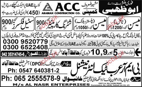 Mason Plasters, Block Mason, Shuttering Carpenters Wanted