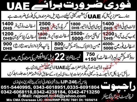 Mason, Road Construction Labors, Pavor Operators Wanted