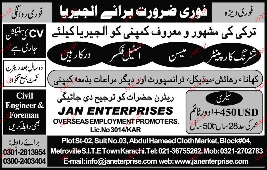Mason, Scaffolders, Shuttering Carpenters Job Opportunity