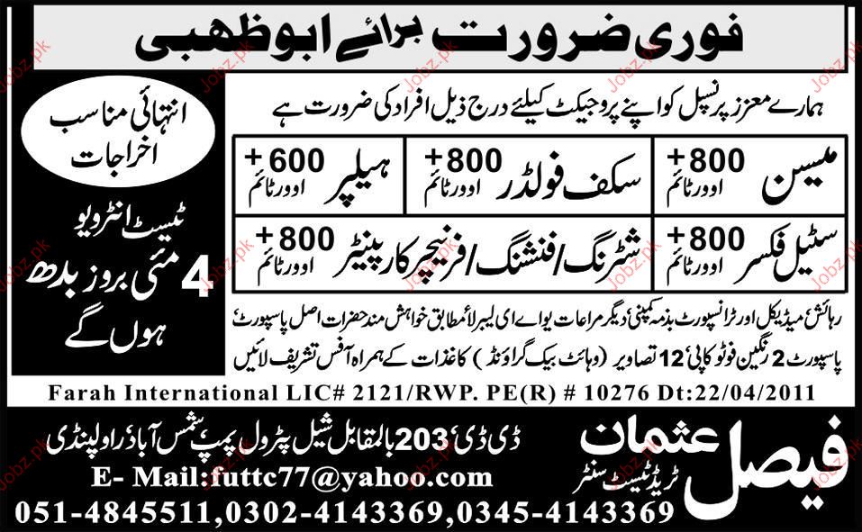 Mason, Scffolder, Helper, Steel Fixer Job Opportunity