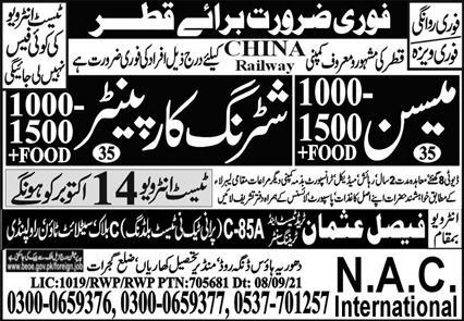 Vacancies in Faisal Usman Overseas Employment Promoters Advertisement October 2021