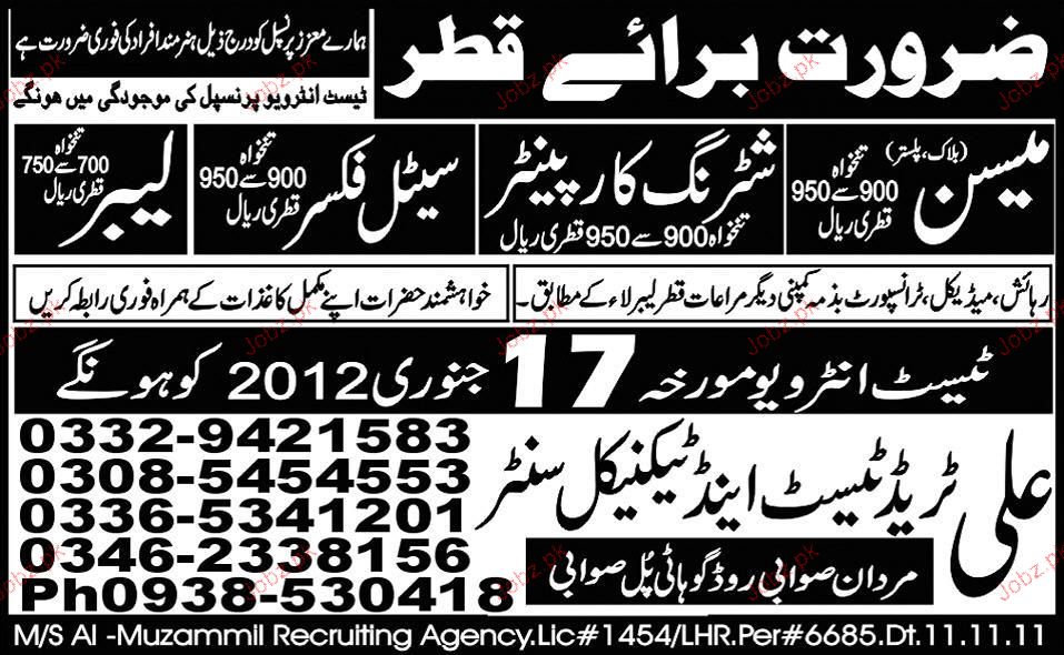 Mason, Shuttering Carpenter, Labors Job Opportunity