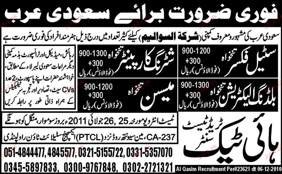 Mason, Shuttering Carpenter, Steel Fixer Job Opportunity