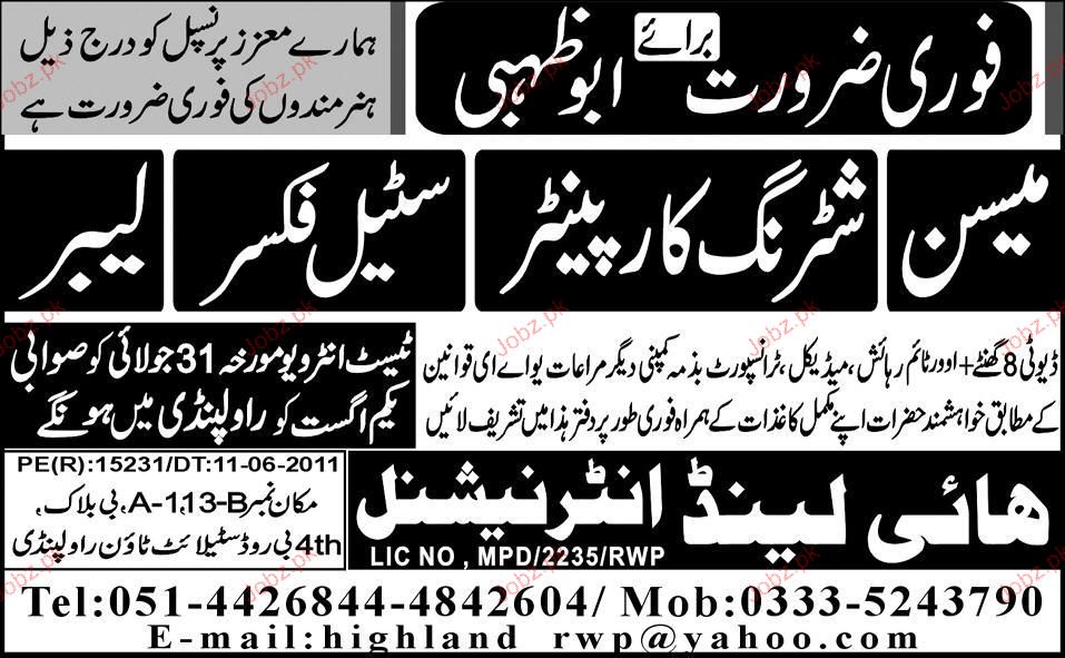 Mason, Shuttering Carpenter, Steel Fixer Job Opportunity