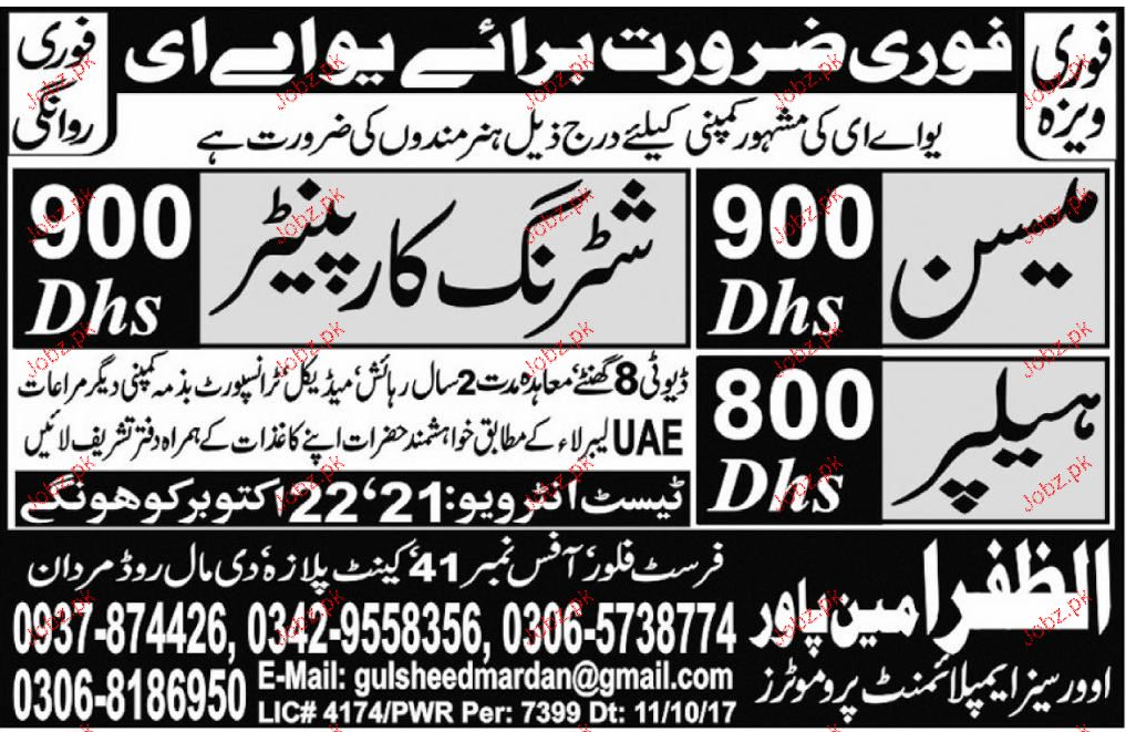 Latest Al Zafara Manpower Overseas Employment Promoters Construction Posts UAE 2025