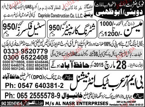 Mason, Shuttering Carpenters And Steel Fixers Wanted