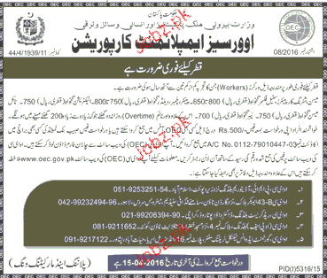 Latest Overseas Employment Corporation OEC Construction Posts Islamabad 2025