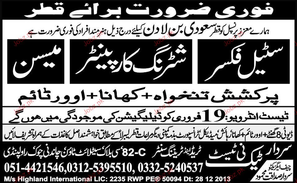 Apply as per details in job advertisement. Login to view further details of how to apply via https://www.jobz.pk online.