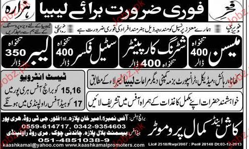 Mason, Shuttering Carpenters, Labors JOb Opportunity