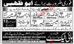 Mason, Shuttering Carpenters, Steel Fixers, Labors, Charge Hand, Foreman and Tile Mason are required in Abu Dhabi.