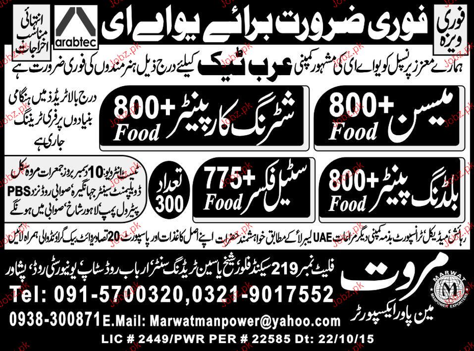 Mason, Shuttering Carpenters, Steel Fixers and Building Painters are required in UAE.