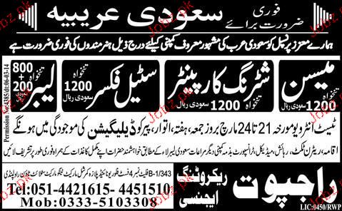 Mason, Shuttering Carpenters, Steel Fixers Job Opportunity