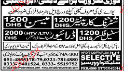Mason, Shuttering Carpenters, Steel Fixers and Drivers are required in Dubai