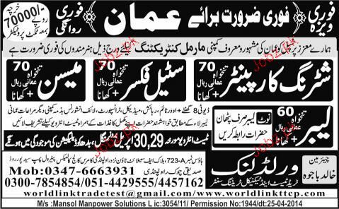 Mason, Shuttering Carpenters, Steel Fixers Job Opportunity
