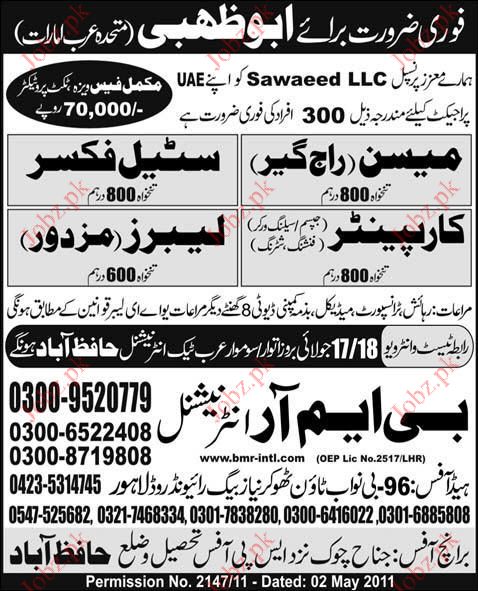 Mason, Steel Fixer, Car Painter and Labor Job Opportunity