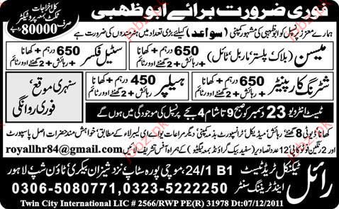 Mason, Steel Fixer, Suturing Car Painter and Helper Vacancy
