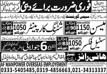 High Rise Technical Training Center invites applications for job positions advertised in daily Express dated 3 July 2023 for following vacancies in Dubai, dubai Dubai.