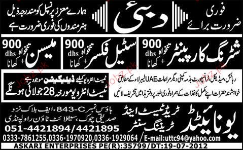 Mason, Steel Fixers And Shuttering Carpenters Required