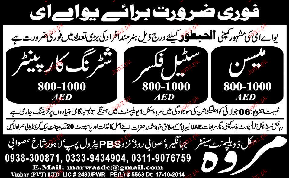 Mason, Steel Fixers and Shuttering Carpenters are required in UAE.