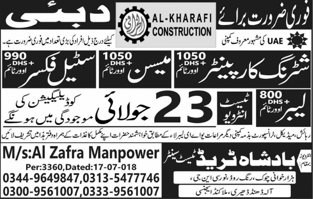 Latest Badshah Trade Test Center Construction Posts Dubai 2025