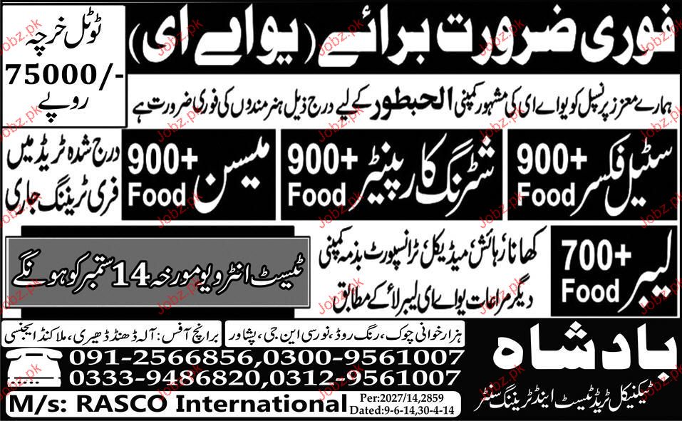 Mason, Steel Fixers, Shuttering Carpenters and Labors are required in UAE.