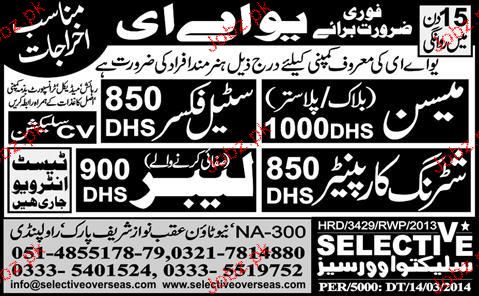 Mason, Steel Fixers, Shuttering Carpenters and Labors are required in UAE