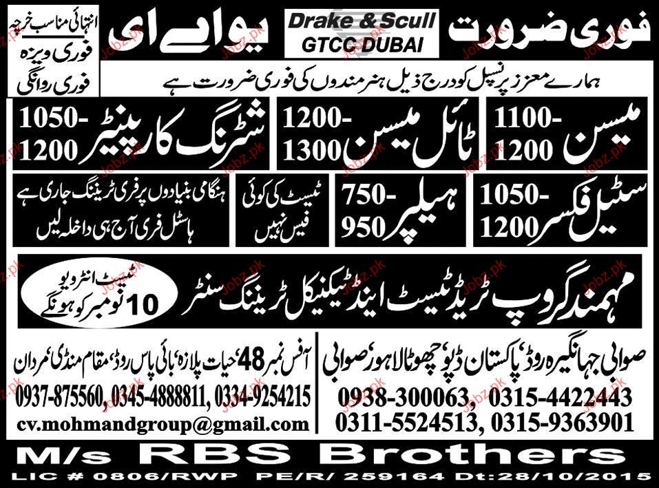 Mason, Tile Mason, Helpers, Steel Fixers Job Opportunity