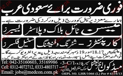 Mason, Tile Mason, Labors, Carpenters And Steel Fixer Wanted